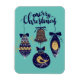 Merry Christmas pattern with birds, owl, balls and bell on a turquoise background.