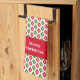 Fun and stylish kitchen towel featuring Christmas ornaments in classic red and green with a star and an elegant mid century modern flair. The lettering is customisable so you can add your family name or favourite holiday greeting. Leave the colours as is or easily choose your own colour scheme to match your style!