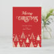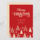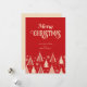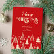 Merry Christmas greetings card red background with beige stylised Christmas trees and snowflakes midcentury retro style template invitation instant download