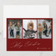 Minimalist red and white simple chic 3 family photos Merry Christmas holiday card template with text message.