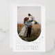 Whimsical and minimal holiday photo card featuring a white arch frame with a typography text that says "Merry Christmas." You can add a total of 3 photos on this card on the front and back.