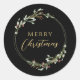 Merry Christmas Minimalist Wreath Black Classic Round Sticker