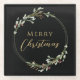 Merry Christmas Minimalist Wreath Black Glass Coaster
