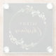 Glass coaster featuring a minimalist watercolor wreath with red floral and green foliage accents. This elegant wreath frames the greeting "Merry Christmas". Makes a great gift.