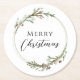 Merry Christmas Minimalist Wreath White Round Paper Coaster