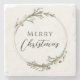 Merry Christmas Minimalist Wreath White Stone Coaster