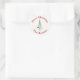 This round sticker has Merry Christmas greeting at the top with a modern minimalist Christmas tree and a little red bird, below is the family name you can personalise for this sticker. This design is in classic red and green Christmas colours. This sticker would be great for envelopes or Christmas cookie exchange gifts boxes.