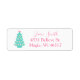 These return labels have a modern minimalist Christmas tree and a little pink bird on top for a Christmas themed return address label. This design is in modern pink and teal Christmas colours. Personalise this with your own name and address.