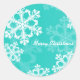 Merry Christmas Modern Cyan Snowflakes Pattern Classic Round Sticker