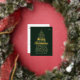 Design is composed of a red and green Christmas tree with a dark background. Customise the holiday greeting, year, and family name. Add a custom message and return address at the back.