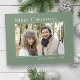 Merry Christmas Modern Family Photo Elegant Green Holiday Postcard