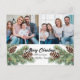 Merry Christmas Modern Pineneedle 2 Photo Collage Holiday Postcard