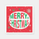 Merry Christmas Modern Red Festive Holiday Paper Party Napkins features a modern Merry Christmas in green and red accented with snowflakes. Personalise by editing the text in the text box provided. Designed by ©Evco Holidays www.zazzle.com/store/evcoholidays