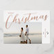 Merry Christmas Modern Rose Gold Script Photo Foil Holiday Card