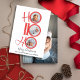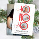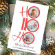 This design features a whimsical cute merry modern simple cute script,4 four picture photo collages, minimalist hohoho Santa typography, ho ho ho merry Christmas, clean trendy red and green, minimal circle photo multi collage, modern elegant simple trendy, modern calligraphy script font, simple and minimal whimsical style, Santa laugh quote saying