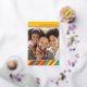 Merry Christmas Modern Stripes Photo Foil Holiday Cards features your favourite photo on a simple colourful yellow, orange, red and blue striped background with the text "Merry Christmas" in modern foil script typography. Perfect for Christmas to send to friends and family. Available as a physical paper holiday greeting card and as a printable instant download digital greeting cards. Designed by ©Evco Studio www.zazzle.com/store/evcostudio