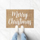 Merry Christmas modern white script cool design burlap doormat. This design looks very fresh, modern and in stylish white text. For you who love farmhouse style but modern in the same time. The text and image are customisable.