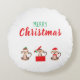 Merry Christmas Monkey Wearing Christmas Hat Round Cushion