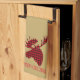 Shown in matte gold colouring, this kitchen towel has a festive red and black buffalo plaid moose head on both ends and centred along with the greeting