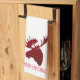 Shown in white, this kitchen towel has a festive red and black buffalo plaid moose head on both ends and centred along with the greeting