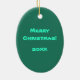 This cute Holiday ornament has a cartoon moose image dressed in a red and white Santa hat and green bow, all on a Christmas green background. The back side is the same green background and the text currently says "Merry Christmas 2012" but you can easily personalize it or change it to anything you'd like. If you'd like to change the font, color, size or location of the text, you may do so by using "Customize it".