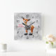 Merry Christmas moose wearing a hat Square Wall Clock
