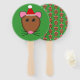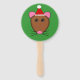 This awesome hand fan features a funny cartoon of a Christmas mouse with big round eyes, pink ears, a small pink nose and cute little twitchy whiskers. The mouse is wearing a red and white Santa hat ready for Christmas.