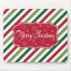 Merry Christmas illustration with text and snowflakes design on red, white and green striped background