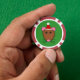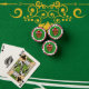 This awesome set of poker chips features a funny cartoon of a Christmas mouse with big round eyes, pink ears, a small pink nose and cute little twitchy whiskers. The mouse is wearing a red and white Santa hat ready for Christmas.