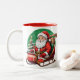 A cozy mug that instantly brings the holiday spirit to your hands. On one side, there's a joyful Santa Claus, all smiles, riding his sleigh through a snowy night. The sleigh is decked out in classic Christmas colors – vibrant reds, greens, and a touch of gold. Flip the mug around, and you'll see a cheerful "Merry Christmas!" greeting you in a festive font. It's the perfect mug to sip hot cocoa from while you enjoy the holiday season!