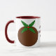 This fun festive mug would make a great gift for mum. It features a tasty looking chocolate brown coloured Christmas pudding with a sprig of holly on top. The image is on both sides of the mug. In between is the message "Merry Christmas Mum, this text is customisable so you can turn this into a lovely personalised gift for your mum or another relation or friend. The design is shown on a red and white ringer style mug, but is also available on many more styles and colours of mug, including beautiful frosted glass mugs and convenient travel mugs to keep hot drinks warm through the winter.
