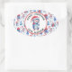 Merry Christmas & Name on 4 Penguin Pattern Oval Sticker