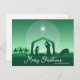 Merry Christmas Nativity Scene Green Religious Holiday Postcard