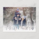 a simple Merry Christmas script in a simple calligraphy style. This Christmas 2 two Photo postcard has a white border with a blurred feathered effect and the word Merry Christmas is cutout. Your photo or picture fits underneath this graphic to create an overlapped effect. This design features a Merry Christmas cutout typography, elegant trendy script calligraphy, simple minimalist script typography, modern family elegant cute, clean trendy full bleed photo, classic traditional 1 one photo, hand-lettered script calligraphy, modern elegant simple trendy, picture white text overlay, a budget-friendly Christmas holiday photo postcard.
