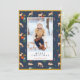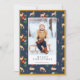 Merry Christmas Navy Reindeer Floral Pattern Photo Holiday Card