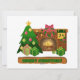 Merry Christmas near fireplace bonfire xmas tree Holiday Card