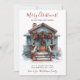 This rustic watercolor Merry Christmas new home for the holidays announcement card with a festively decorated wood front door with pine boughs and trees, a wreath, and red holiday bows would be perfect to send to your friends and family now that you have moved to a new home. The sentiment is customisable. Get enough so that everyone you know and love has your new address. They'll be so excited about your big move!