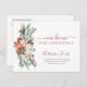 Christmas seasonal floral bouquet with holly berries and seasonal foliage family greetings postcard from a new home, making an elegant rustic modern holiday moving announcement postcard. ++++++++ Easy to personalise with your family name, new address, and wishes on both sides!