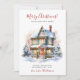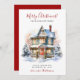 This rustic watercolor Merry Christmas new home for the holidays announcement card with a festively decorated house with snow, pine boughs, a wreath, red bows and trees would be perfect to send to your friends and family now that you have moved to a new home. The sentiment is customisable. Get enough so that everyone you know and love has your new address. They'll be so excited about your big move!