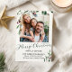 Cute greenery watercolor photo Christmas card and moving announcement. Easy to personalise with your details. Please get in touch with me via chat if you have questions about the artwork or need customisation. PLEASE NOTE: For assistance on orders, shipping, product information, etc., contact Zazzle Customer Care directly https://help.zazzle.com/hc/en-us/articles/221463567-How-Do-I-Contact-Zazzle-Customer-Support-.
