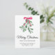 Are you moving to a new home this festive season? This botanical moving announcement postcard lets family and friends know your new address. It is decorated with watercolor mistletoe and features a red ribbon, with the words 'Merry Christmas' in stylish script typography.