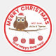 Merry Christmas & New Year Winter Cute Owl Name Classic Round Sticker