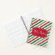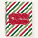 Merry Christmas illustration with text and snowflakes design on red, white and green striped background