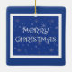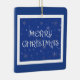 Merry Christmas on Blue with Snowflakes Ceramic Ornament