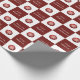 You can customise your Christmas wrapping paper with your name and a personalised message. The custom message (Shown: Merry Christmas) will be in an elegant white script. Your name will be in a non-script white text. A lovely, red Christmas ornament with a snowflake accompanies the text. Everything is on a chequerboard background.