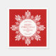 Merry christmas customisable napkin template. White ornate snowflake over red customisable background.
