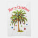 Merry Christmas Palm Tree Light Hawaiian Tropical Tea Towel