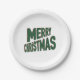 These plates showcase the words "Merry Christmas" in a bold print font plus green letters red outline with different size letters in the background in this X-mas theme and style. Plates come in a set of eight and is printed on durable paper stock great for serving cake, appetizers, or salads. All plates are FDA approved for food contact and safety fully biodegradable and printed with vegetable-based inks printed in USA.