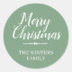 A simple and modern Merry Christmas gift sticker or envelope seal with the text Merry Christmas in white chic handwritten script calligraphy on a vintage green background. Simply add your family name. Exclusively designed for you by Happy Dolphin Studio. If you need any help or matching products, please contact us at happydolphinstudio@outlook.com.
