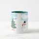 This cute mug will make a great gift for Christmas...you can personalise the text for 'name' and 'year', or delete one or both....add your own text, it's easy! Features a snowman, Xmas tree, and a pair of kids sledding down the hill beyond.